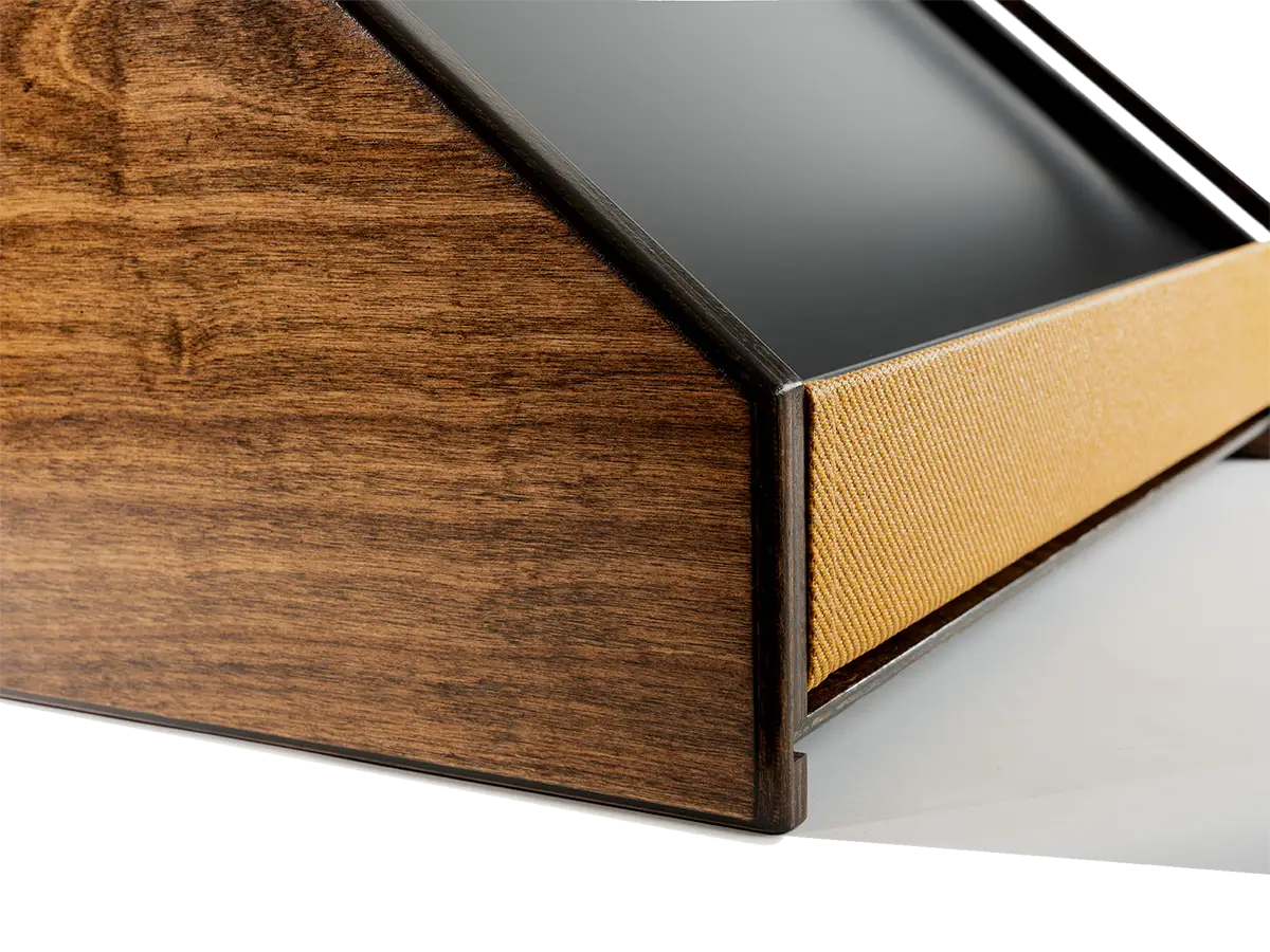 Standing, seated, upclose or 3 performers back, UnPromptu software can be read no matter how you rock and scroll. A 40º angle is the default for most users. Turn it on its head at a 50º slant and view from another perspective. Stow the cover underneath or slide it from the back, it still looks like just another piece of gear from behind.